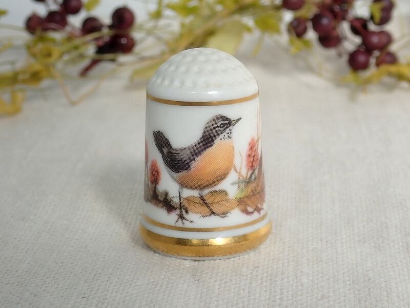 FRANKLIN PORCELAIN フランクリン・ポーセリン シンブル 野鳥 指ぬき ヴィンテージ コマツグミ