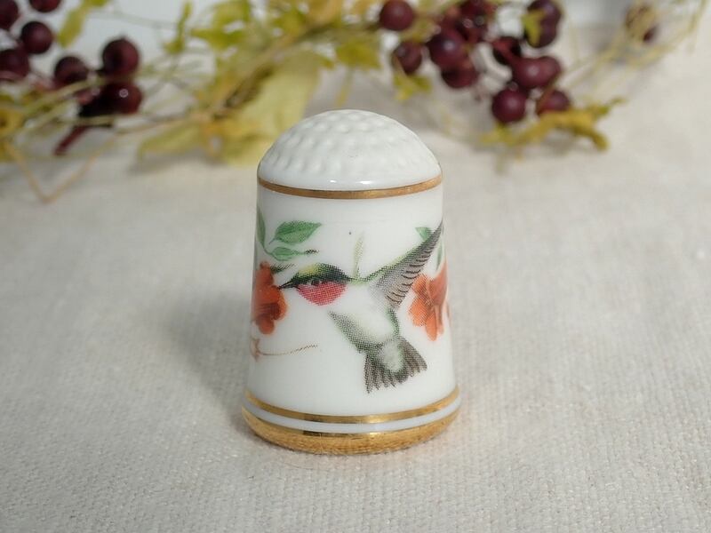 FRANKLIN PORCELAIN フランクリン・ポーセリン シンブル 野鳥 指ぬき ヴィンテージ ノドアカハチドリ