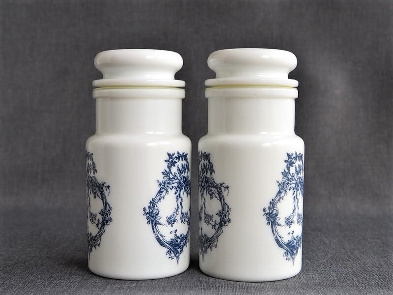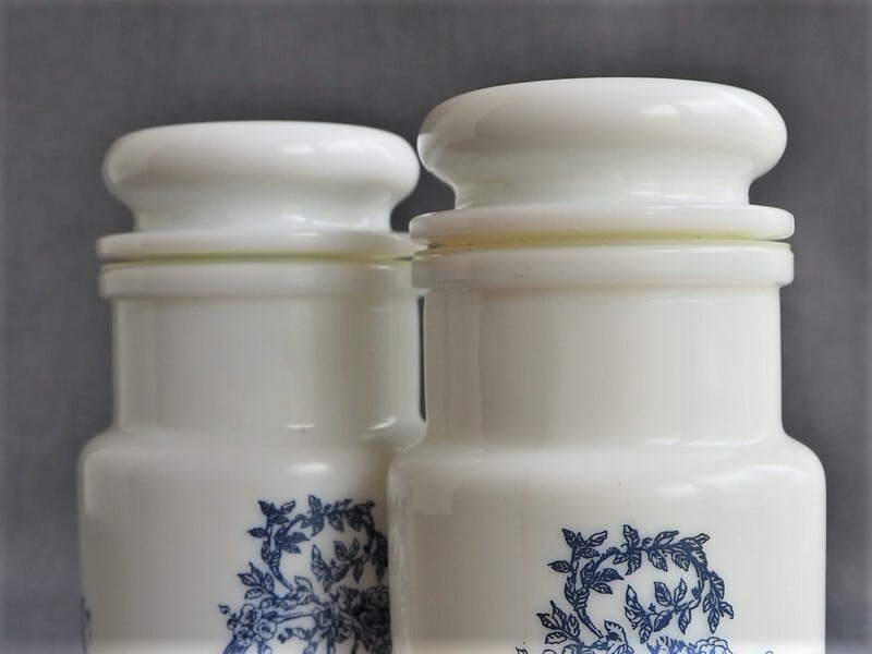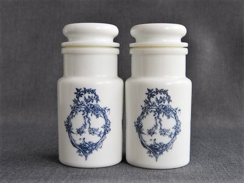 イタリア製 ミルクガラスのキャニスター2個セットです。